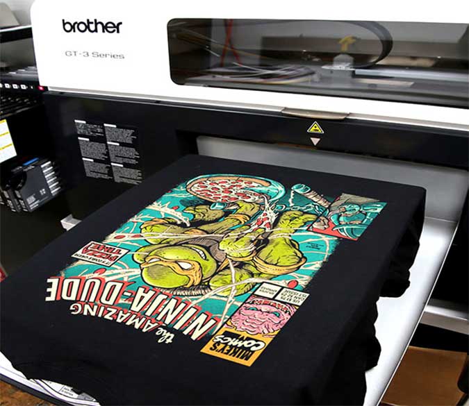 DTG printing on t-shirt is not cheap. The ink is expensive. The actual equipment is expensive. Maintenance and R&D are expensive. DTG printers cannot keep pace with screen printers. They print line-by-line – just like a printer at your house.